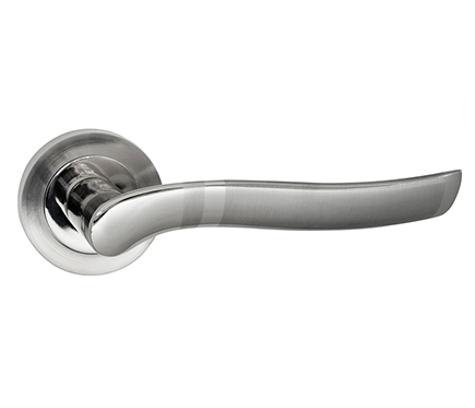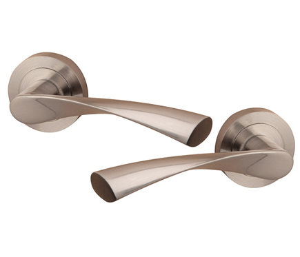 • Manilla con roseta modelo Tallin acabado en níquel satinado. Medidas: 5.2 x 12.8 x 5.6 cm (ancho x alto x fondo).
