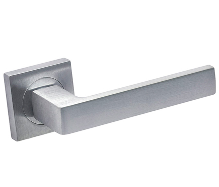 • Manilla con roseta cuadrada modelo Alicia acabado en cromo satinado. Medidas: 5 x 15 x 5.5 cm (ancho x alto x fondo).