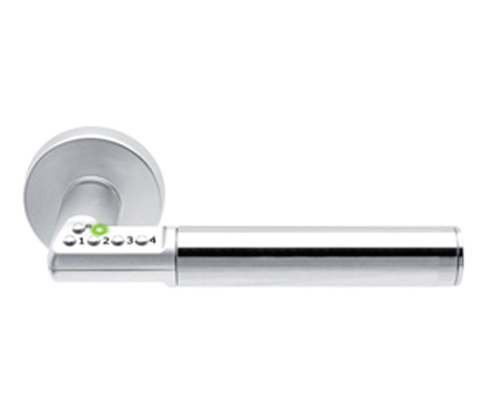 • Roseta derecha programable para puerta de interior fabricada en zamak y acero inoxidable.